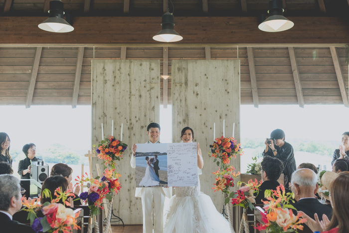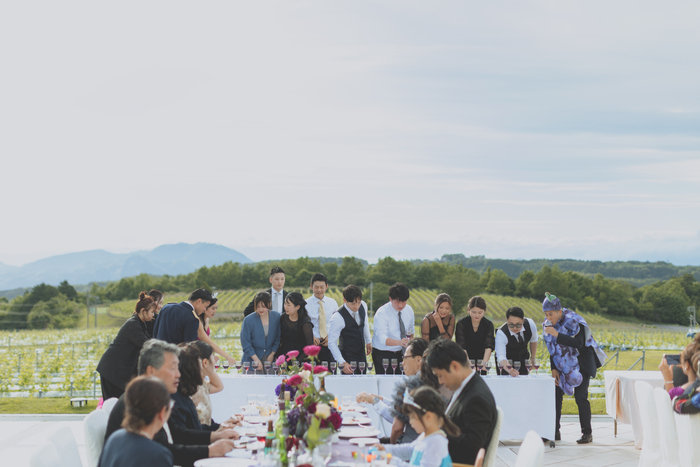 挙式(チャペル内人前式)+93名披露宴(1Fテラス)
