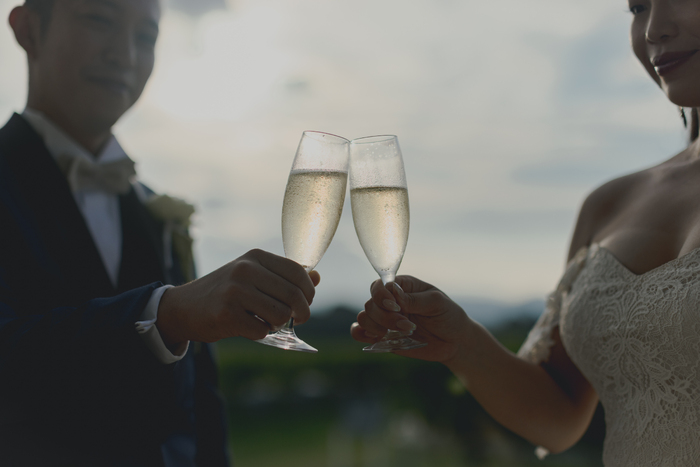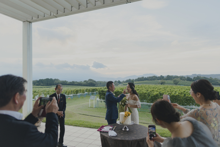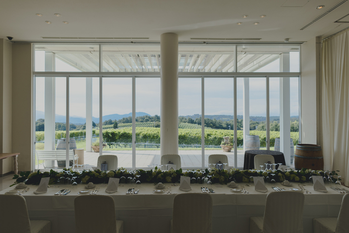 ぶどう畑をバックにテラスでの空間をお楽しみいただきました
